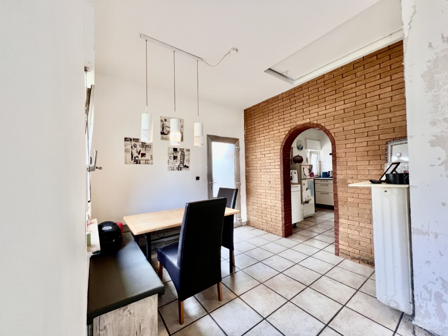 Über den Flur gelangen Sie in das derzeit als Esszimmer genutzte Zimmer und weiter in die Küche, von der aus Sie direkt den Garten betreten können.