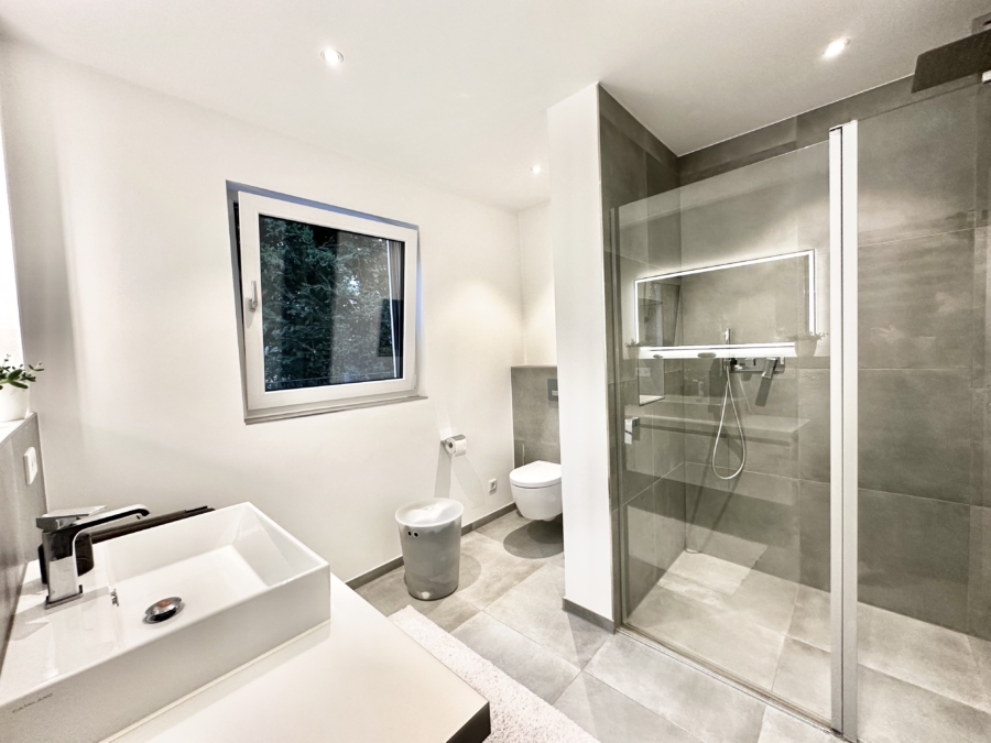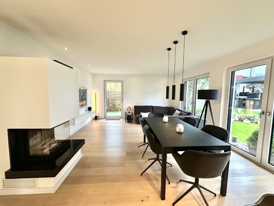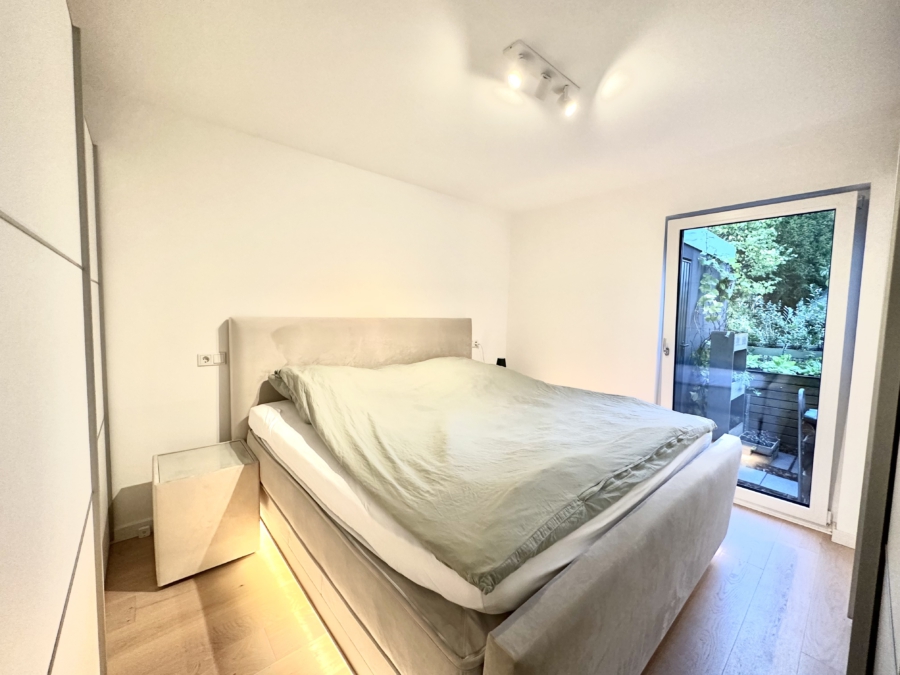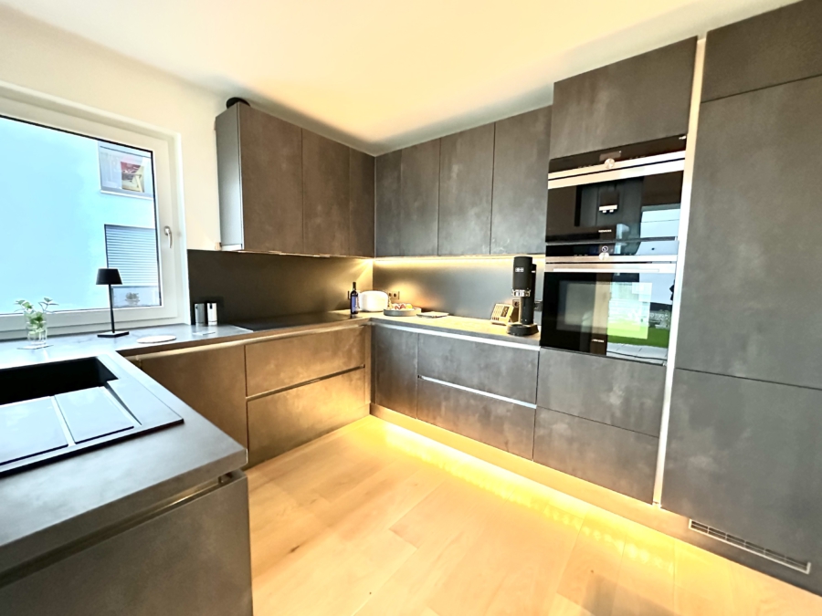 Bei dieser Immobilie handelt es sich um eine neuwertige Erdgeschosswohnung mit Garten. Das Objekt zeichnet sich durch eine gehobene Innenausstattung (Kamin, helles Eichenparkett, hochwertige Möblierung, Smart Home, Philips Hue Lichtkonzept, Samsung The Frame Smart TV im Wohnzimmer und im Arbeitszimmer, Einzelraumsteuerung der Zimmertemperatur per App, Smart Lock Haustür, Somfy App-Steuerung der Rollläden im Wohnzimmer und in der Küche etc.) aus und kann ab dem 02.01.2026 bezogen werden. Ein Badezimmer und ein separates Gäste-WC zählen neben dreieinhalb schönen Zimmern zu dem Haus. Besonders toll ist die großzügige Grundstücksgröße von 160 Quadratmetern, die Ihnen bei schönem Wetter eine private Fläche im Freien bietet. Beachten Sie, dass es sich hierbei um ein barrierefreies Objekt handelt. Die Immobilie bietet mit der vorinstallierten Einbauküche von Häcker Küchen (schwarz matt) mit smarten Siemens und Miele Küchengeräten, dem Carport und dem Stauraum im dazugehörigen Keller (smarte Miele Waschmaschine und smarter Miele Trockner mit den höchsten Energieeffizienzklassen, smarter 200l Liebherr Stand alone Gefrierschrank ) einiges an Komfort. Das 2020 erbaute Gebäude wird per Wärmepumpe beheizt, hat 17,1 kWp Fotovoltaik auf der Dachfläche verbaut, einen 15kWh großen Energiespeicher im Keller, eine Wallbox für e-Fahrzeuge und eine 9.000l umfassende Regenwasserzisterne für die Gartenbewässerung und WC-Spülung.. Im Abstellraum zum Carport sind die Gartengeräte untergebracht sowie ein 385l großer Kühlschrank und ein Zwei-Zonen Weinkühlschrank für 42 Flaschen. Rund-Um-Sorglos-Paket zum sofortigen Einzug ohne Umzug in ruhiger Lage, aber direkter City-Nähe.