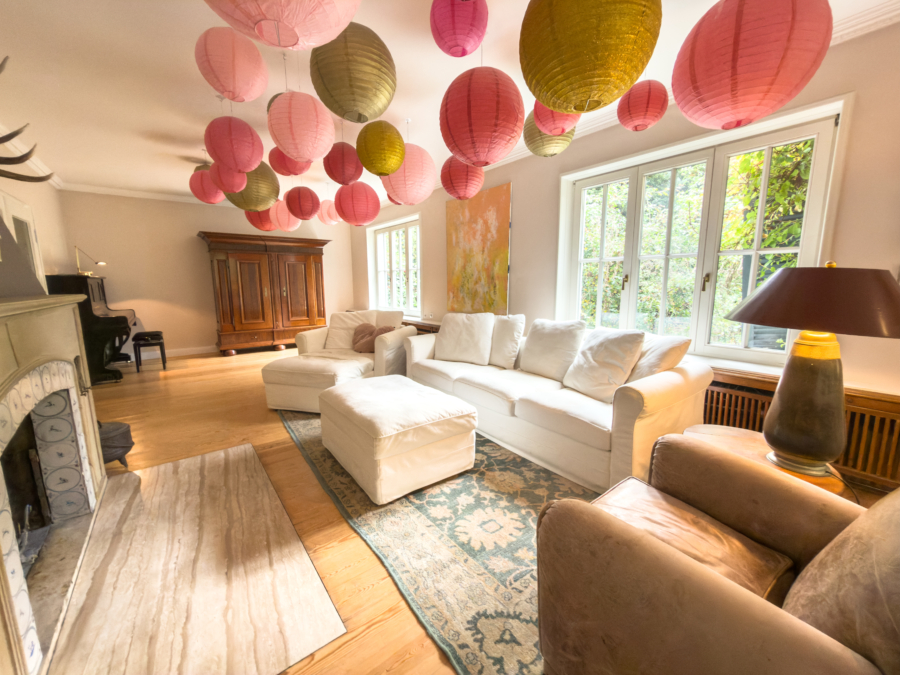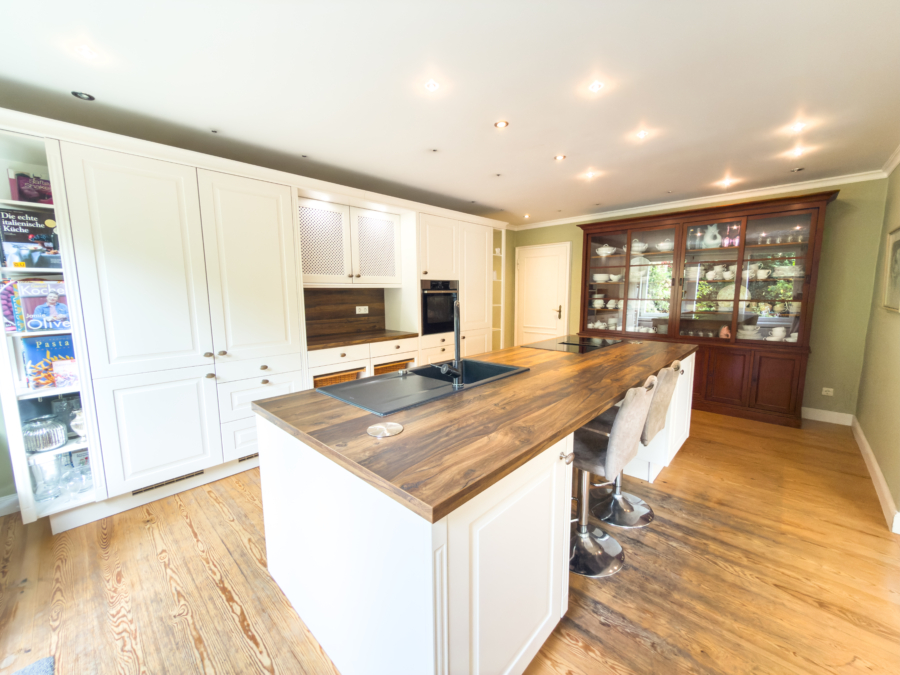 Der gepflegte Garten wird nachhaltig über einen eigenen Brunnen mit Wasser versorgt. Dicht gewachsene, alte Bäume und eine durchdachte Bepflanzung sorgen für natürlichen Sichtschutz – sowohl zu den Nachbargrundstücken als auch innerhalb des Gartens – und bieten somit ein hohes Maß an Privatsphäre.Ausstattung