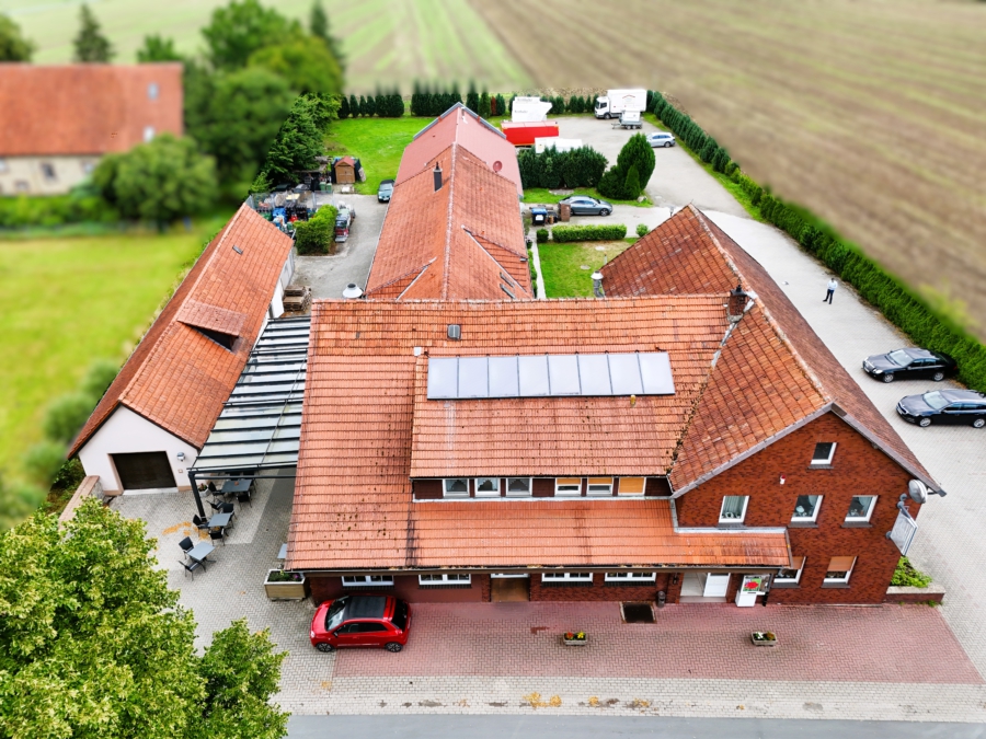 Wir freuen uns, Ihnen ein einzigartiges Objekt in der malerischen ländlichen Gegend von Belm präsentieren zu dürfen. Diese Immobilie, die derzeit erfolgreich als Hotellerie, Gastronomie und Getränkehandel betrieben wird, bietet außergewöhnlich vielseitige Nutzungsmöglichkeiten und eignet sich für eine Vielzahl von Projekten. Die Liegenschaft wurde ursprünglich um das Jahr auf einem ca. 4.063 m² großem Grundstück erbaut und verfügt über eine Gesamtfläche von ca. 1.037,88 m². Die Fläche setzt sich aus dem Ursprungshaus sowie einem Anbau aus dem Jahr 1997, Nebengebäude (aktuell Getränkelager, ehemalig Pferdestall) und einem Betriebsleiterwohnhaus aus dem Jahr 2016 zusammen. Die Flächenaufstellung der Liegenschaft gestaltet sich wie folgt (Wohn- und Nutzflächenberechnung wird Ihnen zusammen mit dem Exposé zur Verfügung gestellt): Zudem verfügt das Anwesen über insgesamt 40 Stellplätze, davon zwei mit einer Ladestation für E-Fahrzeuge. Das Betriebsleiterwohnhaus, welches im Jahr 2016 in holzrahmenbauweise errichtet wurde, bietet in allen Räumen eine Fußbodenheizung für besonders hohen Wohnkomfort. Dieses Haus fügt sich nahtlos in das Gesamtkonzept des Anwesens ein und bietet eine moderne und gemütliche Wohnlösung. Die Gebäude werden durch zwei Ölzentralheizungen aus dem Jahr 2015 beheizt. Für die Abwasserentsorgung sorgt eine Kleinkläranlage und die Wasserversorgung erfolgt über die Stadt. Das Objekt bietet jedoch weit mehr als nur die bestehende Nutzung. Aufgrund der großzügigen Flächen und der bereits vorhandenen Infrastruktur eröffnet sich eine Vielzahl an Nutzungsmöglichkeiten. Einige Möglichkeiten finden Sie anbei: Pferdehof: Der große Außenbereich und die umliegenden Weiden eignen sich ideal für die Haltung von Pferden. Das großzügige Nebengebäude war früher ein Pferdestall und könnte problemlos wieder für diesen Zweck umgebaut werden. Optional könnte auch eine großzügige Weide in unmittelbarer Nähe zur Immobilie erworben werden. Seminar- und Weiterbildungseinrichtungen: Umgestaltung der Räumlichkeiten für Konferenzen, Workshops, Teambuilding oder Retreats in ruhiger ländlicher Lage mit Übernachtungsoption. Eventlocation: Nutzung des Gastronomiebereichs und Außenbereichs für Hochzeiten, Feiern und Firmenveranstaltungen. Nutzung der zahlreichen Hotelzimmer für Übernachtungen der Gäste direkt vor Ort. Zusätzlich könnte durch den Umbau des Nebengebäudes oder die Errichtung eines Eventzeltes noch mehr Platz für größere Veranstaltungen geschaffen werden. Ob beispielsweise als Pferdehof, Eventlocation, Seminar- und Weiterbildungsräumen – das Anwesen bietet Ihnen die Freiheit, Ihre Visionen zu realisieren. Für weitere Informationen und zur Vereinbarung eines Besichtigungstermins stehen wir Ihnen gerne zur Verfügung. Lassen Sie sich von den vielfältigen Möglichkeiten dieses außergewöhnlichen Objekts in der idyllischen Umgebung begeistern. Der Energieausweis befindet sich in Bearbeitung. Renovierungs- und Modernisierungsaufstellung: Highlights im Überblick: Der Eigentümer hat uns beauftragt, den Verkauf seiner Immobilie abzuwickeln. Auf Wunsch des Eigentümers bitten wir von direkten Kontaktaufnahmen abzusehen und Besichtigungstermine nur über die Appelhans Immobilienmakler GmbH zu vereinbaren. In einer malerischen, ländlich geprägten Gemeinde im südlichen Teil des Landkreises Osnabrück in Niedersachsen. Die Ortschaft zeichnet sich durch ihre idyllische Lage und ihre naturnahe Umgebung aus. Umgeben von weitläufigen Feldern, Wäldern und sanften Hügeln bietet der Ort eine hohe Lebensqualität und Ruhe, fernab vom hektischen Stadtleben. Die Region ist ein wahres Paradies für Naturliebhaber, Wanderer und Radfahrer, die die herrliche Landschaft in vollen Zügen genießen können. Trotz der idyllischen Abgeschiedenheit ist der Ort hervorragend an das Verkehrsnetz angebunden, sodass die Stadt Osnabrück, nur wenige Kilometer entfernt, mit all ihren Annehmlichkeiten schnell erreicht werden kann. Die ruhige Lage kombiniert die Vorteile des ländlichen Lebens mit der Nähe zu städtischen Infrastrukturen, was ihn zu einem besonders attraktiven Standort für Menschen macht, die das Beste aus beiden Welten schätzen: Natur und Ruhe, gepaart mit der Erreichbarkeit städtischer Angebote.