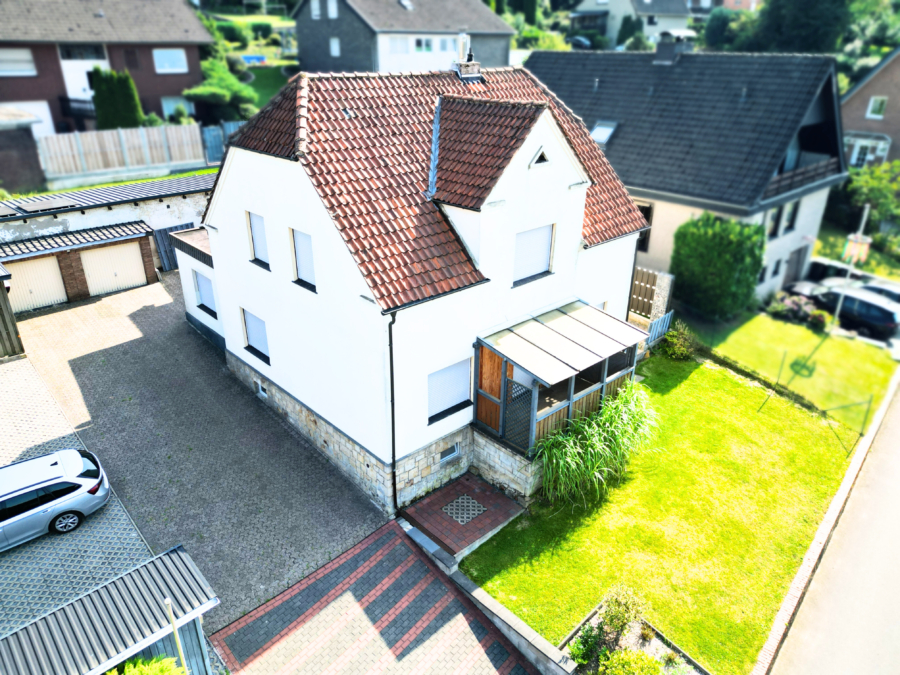 Dieses charmante Ein- bis Zweifamilienhaus auf einem 769 m² großen Eigentumsgrundstück bietet mit rund 208 m² Wohnfläche vielfältige Nutzungsmöglichkeiten. Ob als großzügiges Einfamilienhaus, klassisches Zweifamilienhaus oder mit einem zusätzlichen kleinen Apartment – hier ist vieles denkbar. Derzeit ist die Immobilie in zwei separate Wohneinheiten mit eigenen Eingängen aufgeteilt, die jedoch problemlos auch zusammengelegt werden können. Im Erdgeschoss befindet sich ein helles Wohnzimmer mit gemütlichem Kaminofen und Zugang zum Balkon. Zwei weitere Zimmer lassen sich flexibel als Schlaf-, Kinder- oder Arbeitszimmer nutzen. Eine praktische Küche sowie ein modernes Badezimmer mit ebenerdiger Dusche und zwei Zugängen runden das Raumangebot auf dieser Ebene ab. Im Obergeschoss erwartet Sie ein weiteres Wohnzimmer mit Fernsehecke und Kaminofen, ein Schlafzimmer, ein Badezimmer, ein Esszimmer sowie eine Küche. Auf Wunsch kann die Küche auch in den Essbereich integriert werden, sodass der bisherige Küchenraum als kleines, separates Apartment genutzt werden kann. Der Altbaubereich ist vollständig unterkellert und bietet damit reichlich Stauraum, Platz für Hobbyräume oder eine Werkstatt. Seit 2014 wurde die Immobilie umfassend modernisiert: drei neue Badezimmer wurden eingebaut, sämtliche Wasser- und Abwasserleitungen sowie die gesamte Elektrik inklusive Schaltschrank erneuert. Die Fenster im Erdgeschoss stammen aus dem Jahr 2014, die Fenster im Obergeschoss aus 2021. Zudem wurden das Dach des Nebengebäudes und das Garagendach erneuert. Zwei moderne und gepflegte Kaminöfen sorgen für eine angenehme Wohnatmosphäre. Zur Immobilie gehören außerdem zwei Garagen, ein Carport mit Stellplatz sowie fünf zusätzliche Außenstellplätze, sodass auch für einen größeren Fuhrpark oder Gäste stets ausreichend Parkmöglichkeiten vorhanden sind. Das großzügige Grundstück bietet viel Raum für individuelle Gestaltungsideen im Garten und macht das Haus zu einem Ort, der modernen Wohnkomfort mit vielseitigen Nutzungsmöglichkeiten verbindet. Energieausweis: Energiebedarfsausweis, Energieeffizienzklasse G, Energiekennwert 205,7 kWh/qm-a, Energieträger Gas, Baujahr 1929 Die Highlights auf einen Blick: Der Eigentümer hat uns beauftragt, den Verkauf seiner Immobilie abzuwickeln. Auf Wunsch des Eigentümers bitten wir von direkten Kontaktaufnahmen abzusehen und Besichtigungstermine nur über die Appelhans Immobilien GmbH zu vereinbaren. Die Immobilie befindet sich in einer der begehrtesten Wohnlagen von Georgsmarienhütte. Das Umfeld ist geprägt von einer harmonischen Mischung aus historischer Architektur, großzügigen Grünanlagen und einer ruhigen, gepflegten Nachbarschaft. Einkaufsmöglichkeiten, Kindergärten und Schulen sind in wenigen Minuten erreichbar. Ebenso bietet die Umgebung eine ausgezeichnete Anbindung an Osnabrück sowie an die umliegenden Naherholungsgebiete des Teutoburger Waldes – ideal für Freizeit, Sport und Naturerlebnisse. Die Lage verbindet die Ruhe einer gehobenen Wohngegend mit der Nähe zur städtischen Infrastruktur und vereint damit Wohnkomfort, Geschichte und Lebensqualität auf besondere Weise.