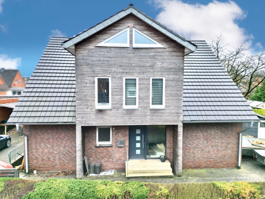 Stellen Sie sich vor: eine einladende Holzfassade, ein Garten, der pure Wohlfühlmomente schenkt, der Duft von frischem Rasen unter Ihren Füßen, gemütliche Kaminabende und entspannende Stunden in der eigenen Sauna. All das wartet hier – bereit, von Ihnen genutzt und gestaltet zu werden. Dieses großzügige Zweifamilienhaus ist mehr als nur solide Bausubstanz – es ist ein Ort voller Möglichkeiten. Ein Haus, das Geschichte trägt und gleichzeitig Raum für neue Ideen lässt. Die durchdachte Aufteilung in zwei Wohneinheiten schafft klare Strukturen, während die bereits begonnene Renovierung und zahlreiche erledigte Kernmaßnahmen die perfekte Grundlage bieten, um hier etwas Eigenes entstehen zu lassen. Ob Mehrgenerationenwohnen, entspanntes Eigennutzerkonzept mit zusätzlicher Mieteinnahme oder ein Zuhause für Menschen mit Sinn für Gestaltung: Dieses Haus passt sich Ihrem Lebensmodell an – nicht umgekehrt. Entspannung im Grünen Flächen & Aufteilung Wohnung 1 – Erdgeschoss: ca. 108 m² Wohnung 2 – Obergeschoss: ca. 136 m², separater Eingang Kellergeschoss: ca. 105 m² Gesamtwohnfläche: ca. 243 m² Grundstück: ca. 794 m² Ausgebauter Dachboden Dachterrasse, Balkon / Terrasse vorhanden Renovierungsstand: Nutzungskonzepte: Mehrgenerationenhaus Wohnen + Vermieten Zwei getrennte Haushalte unter einem Dach Eigennutzung mit Büro / Praxis / Atelier (je nach Bedarf) Fazit Ausstattung & Highlights 2 Wohneinheiten – flexibel nutzbar 3 Bäder (Dusche, Wanne, Fenster, Bidet) 2 Kamine Zentralheizung (Gas) – neu 2017 Dach neu 2017 Kunststofffenster, doppelt verglast (2017) Einbauküche im Kaufpreis enthalten Keller, Abstellräume 2 Garagen Gepflegter Garten mit Saunahaus – klares Wellness-Feeling Viel Potenzial zur individuellen Gestaltung Der Eigentümer hat uns beauftragt, den Verkauf seiner Immobilie abzuwickeln. Auf Wunsch des Eigentümers bitten wir von direkten Kontaktaufnahmen abzusehen und Besichtigungstermine nur über die Appelhans Immobilienmakler GmbH zu vereinbaren. Lage & Umfeld Ruhige, gewachsene Nachbarschaft mit hohem Freizeitwert. Natur direkt vor der Tür, ergänzt durch Reitanlage, Sportplatz und Spielplatz in der Umgebung – ein Umfeld, das Lebensqualität bietet und langfristig stabil nachgefragt bleibt. Nahversorgung & Alltag Bushaltestellen fußläufig: ca. 200–300 m. Supermarkt / Discounter (Lebensmittel): ca. 600–900 m (fußläufig). Weitere Vollsortimenter und Angebote im Zentrum Ibbenbüren: ca. 3–4 km. Bildung & Betreuung Barbaraschule Dickenberg: ca. 400–500 m. Paul-Gerhardt-Schule: ca. 800–1.000 m. Kindergärten in unmittelbarer Nähe (< 1 km).