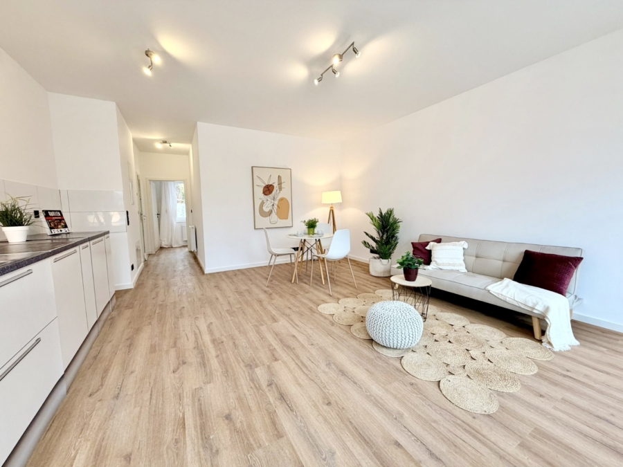 Die modernisierte Erdgeschosswohnung überzeugt durch ihren komplett renovierten Zustand und eine hochwertige Ausstattung. Auf 67,44 m² Wohnfläche bietet die Einheit drei gut proportionierte Zimmer, die vielfältige Nutzungsmöglichkeiten eröffnen – ideal für Singles oder Paare, die Wert auf Komfort und Wohnqualität legen. Ein besonderes Plus ist die weitläufige Terrasse, die direkt an den Wohnbereich anschließt und zusätzlichen Raum zum Entspannen oder für gemütliche Stunden im Freien schafft. Ergänzend steht ein großer Kellerraum zur Verfügung. PKW-Stellplätze am Haus runden das Angebot ab. Im Zuge der Modernisierung wurde das gesamte Objekt technisch auf den aktuellen Stand gebracht. Die Zentralheizung wurde erneuert, ebenso sämtliche Heizkörper, sodass eine effiziente und gleichmäßige Wärmeverteilung gewährleistet ist. Darüber hinaus sorgen moderne, zweifach verglaste Fenster und Türen für einen verbesserten Energiehaushalt und ein ruhiges Wohnumfeld. Die umfassenden Modernisierungen beinhalten zudem eine völlig neue Elektroinstallation, eine neu strukturierte Elektroverteilung sowie einen neuen Zählerschrank im Keller. Ebenso wurden alle Wasser-, Abwasser- und Heizungsleitungen komplett ersetzt, was den langfristigen Werterhalt des Objekts stärkt. Die Wohnung besticht durch ihre solide Ausführung, die moderne Ausstattung und ein angenehmes Wohnumfeld – eine sofort nutzbare Wohneinheit in attraktiver Lage. Neben dieser Einheit werden noch 10 weitere Einheiten in dem Objekt verkauft. Die Auflistung der Objekte und Preise finden Sie in den beigefügten Objektunterlagen. Die Highlights im Überblick: Der Eigentümer hat uns beauftragt, den Verkauf seiner Immobilie abzuwickeln. Auf Wunsch des Eigentümers bitten wir von direkten Kontaktaufnahmen abzusehen und Besichtigungstermine nur über die Appelhans Immobilienmakler GmbH zu vereinbaren. Lüstringen gehört zu den besonders begehrten Wohnlagen Osnabrücks und zeichnet sich durch seine ruhige, grüne und zugleich stadtnahe Atmosphäre aus. Der Stadtteil liegt am östlichen Rand Osnabrücks und wird geprägt von weitläufigen Feldern, Waldflächen und dem sanften Hügelland, das seinem Wohnumfeld einen naturnahen und erholsamen Charakter verleiht. Besonders markant ist der Lüstringer Berg, der als beliebtes Naherholungsgebiet gilt und an vielen Stellen wunderschöne Ausblicke über das Osnabrücker Land ermöglicht. Die Wohngebiete sind großzügig durchgrünt, sodass Lüstringen eine harmonische Verbindung aus ländlicher Ruhe und urbaner Nähe bietet. Distanzen: - Bushaltestelle: 500 m