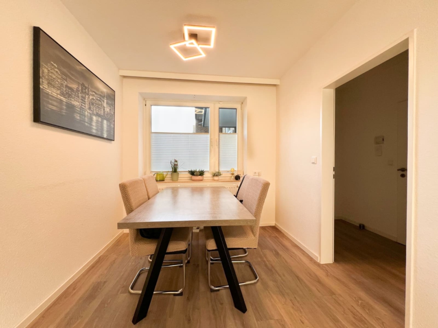 Diese modernisierte 4-Zimmerwohnung mit einer Wohnfläche von ca. 89 m² überzeugt durch ihre durchdachte Raumaufteilung, helle Räume und ein angenehmes Wohnambiente – ideal für Paare oder Familien. Die Wohnung befindet sich in einem gepflegten Mehrparteienhaus mit insgesamt 29 Wohneinheiten. Der Miteigentumsanteil beträgt 3.847/100.000. Beim Betreten der Wohnung gelangen Sie in einen kleinen Eingangsbereich mit Platz für eine Garderobe. Von hier aus erreichen Sie einen praktischen Hauswirtschaftsraum, der über einen Anschluss für die Waschmaschine sowie ein zusätzliches Waschbecken verfügt. Herzstück der Wohnung ist der großzügige und lichtdurchflutete Wohn- und Essbereich. Dank seiner Größe bietet er ausreichend Platz für eine gemütliche Sofalandschaft sowie einen Esstisch für die ganze Familie. Von hier aus gelangen Sie auf die große Terrasse mit Süd-West-Ausrichtung, die zu entspannten Sonnenstunden einlädt. Eine Markise sorgt bei Bedarf für angenehmen Schatten. Ebenfalls vom Wohn- und Essbereich aus erreichen Sie die Küche, die mit einer angenehmen Größe und praktischer Aufteilung überzeugt. Über einen weiteren kleinen Flur erschließen sich die übrigen Räume der Wohnung: Ein eigener Kellerraum gehört ebenfalls zur Wohnung. Hier werden aktuell neue Türen verbaut. Die Wohnung wurde im Jahr 2022 umfassend renoviert. In diesem Zuge wurden unter anderem neue Heizkörper installiert, sodass sich die Immobilie in einem modernen und sehr gepflegten Zustand präsentiert. Der Energieausweis befindet sich aktuell in Bearbeitung. Highlights auf einen Blick: Der Eigentümer hat uns beauftragt, den Verkauf seiner Immobilie abzuwickeln. Auf Wunsch des Eigentümers bitten wir von direkten Kontaktaufnahmen abzusehen und Besichtigungstermine nur über die Appelhans Immobilienmakler GmbH zu vereinbaren. Die Immobilie befindet sich im beliebten Stadtteil Haste im Nordosten von Osnabrück. Haste überzeugt durch seine ruhige, gewachsene Wohnlage und eine familienfreundliche Umgebung mit viel Grün und angenehmer Nachbarschaft. Einkaufsmöglichkeiten für den täglichen Bedarf, Bäcker, Apotheken sowie Ärzte sind bequem erreichbar. Kindergärten und Schulen befinden sich in der näheren Umgebung und machen den Stadtteil besonders attraktiv für Familien. Die Osnabrücker Innenstadt ist sowohl mit dem Auto als auch mit dem Fahrrad oder öffentlichen Verkehrsmitteln schnell erreichbar. Mehrere Buslinien sorgen für eine gute Anbindung. Auch die Autobahnen A1 und A30 sind in kurzer Zeit erreichbar und bieten eine optimale Verkehrsanbindung in alle Richtungen. Zahlreiche Spazier- und Freizeitmöglichkeiten im Grünen sowie nahegelegene Sport- und Erholungsangebote unterstreichen den hohen Wohn- und Lebenswert dieses Stadtteils. Distanzen: